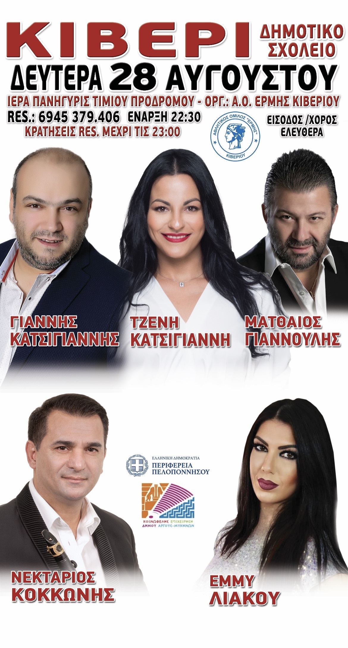 Την Δευτέρα 28 Αυγούστου 2023, παραμονή της εορτής του Τιμίου Προδρόμου, ο ΕΡΜΗΣ ΚΙΒΕΡΙΟΥ διοργανώνει το καθιερωμένο πανηγύρι στο Δημοτικό Σχολείο Κιβερίου.